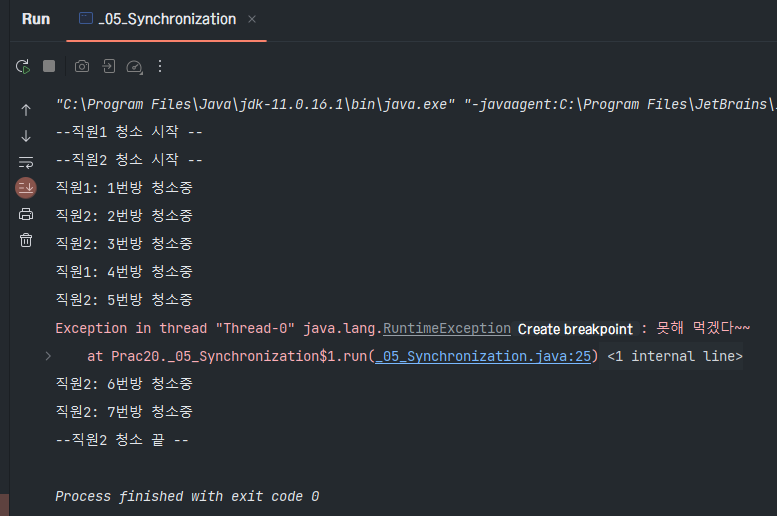 System.out.println("--직원 청소 끝 (Runnable)--");