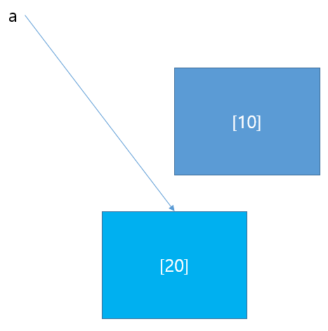 => 배열이 선언되어서, 이미 할당되었는데, a 변수에 새로운 크기의 배열이 저장되었다.
