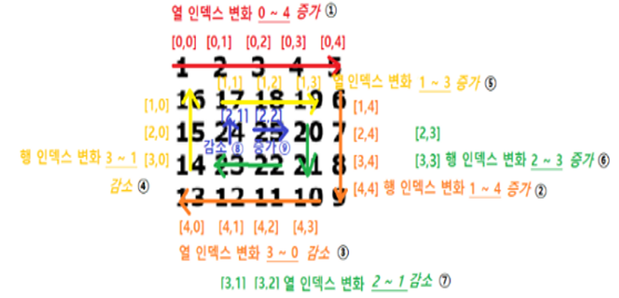 * 한 번 반복 할 때마다 방향이 바뀌어야 한다.