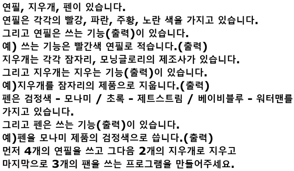 System.out.println("쓰는 기능은 "+ color + "연필로 적습니다.");