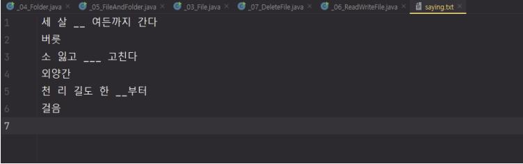 - 퀴즈 내용은 saying.txt 라는 이름의 파일로 제공.