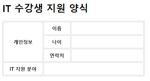 <h1>IT 수강생 지원 양식</h1>
