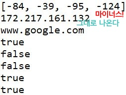 System.out.println(ia1.getHostAddress()); // 문자열로 리턴(0-255) 이걸 권장.