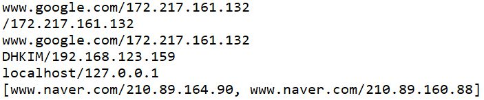 InetAddress ia3 = InetAddress.getByAddress("www.google.com", new byte[] {(byte)172,(byte)217,(byte)161,36}); // 두 개 같이 줬으므로, DNS 서버 확인x. 입력한대로 호스트네임 출력하므로 일부러 틀려도 모른다.