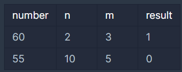 number가 n의 배수이면서 m의 배수이면 1을 / 아니라면 0을 return하도록 solution 함수를 완성해주세요.