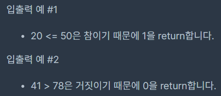 두 문자열 ineq와 eq가 주어집니다. ineq는 "<"와 ">"중 하나고, eq는 "="와 "!"중 하나입니다. 그리고 두 정수 n과 m이 주어질 때, n과 m이 ineq와 eq의 조건에 맞으면 1을 아니면 0을 return하도록 solution 함수를 완성해주세요.