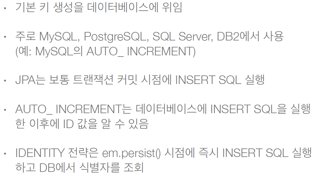 이 IDENTITY 전략은 Id를 내가 직접 넣으면 안 된다.