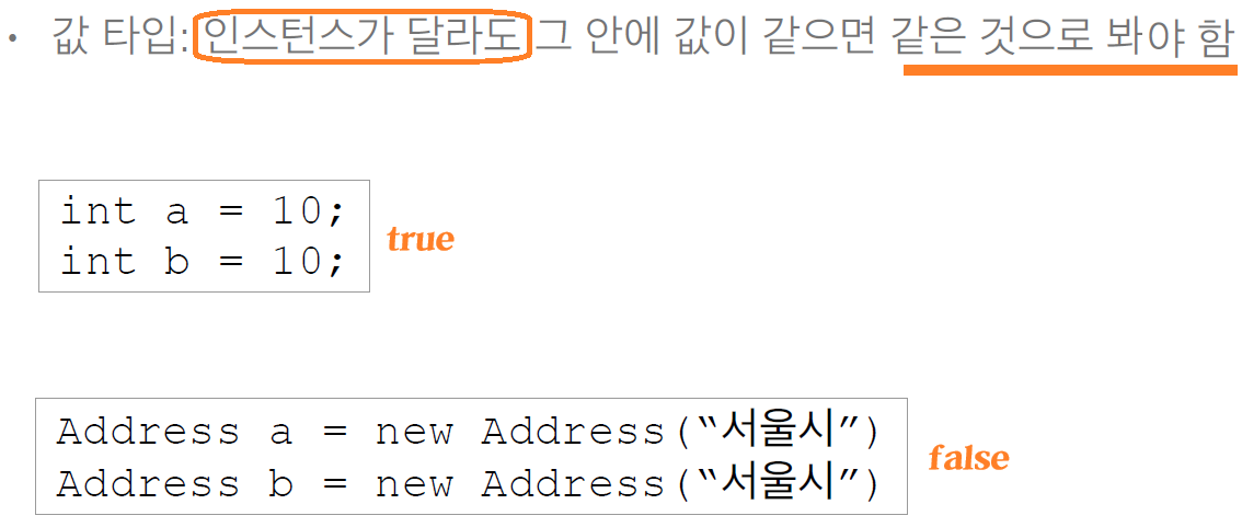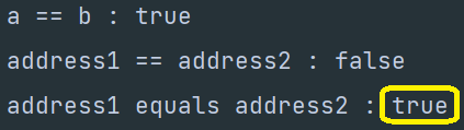 System.out.println("address1 equals address2 : " + (address1.equals(address2))); //이렇게