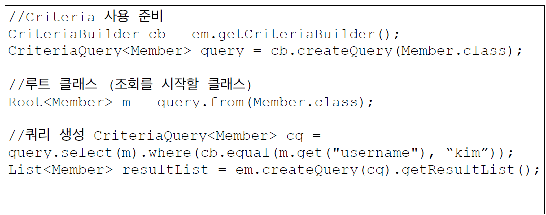 어쨌든 이런동적쿼리 짜기 문제를 해결하기 위해 나온 것이 Criteria이다.