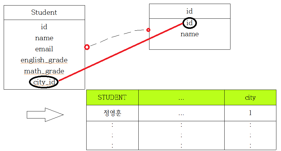 REFERENCES city(id) ON UPDATE CASCADE // 요 테이블이 city 테이블의 id를 참조함.