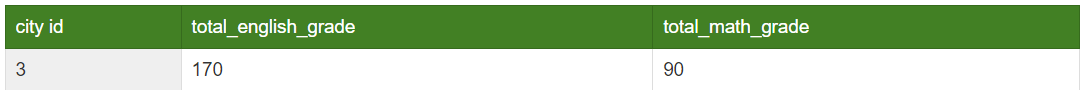 -- city_id그룹이 3 영어, 수학 점수 총점 출력