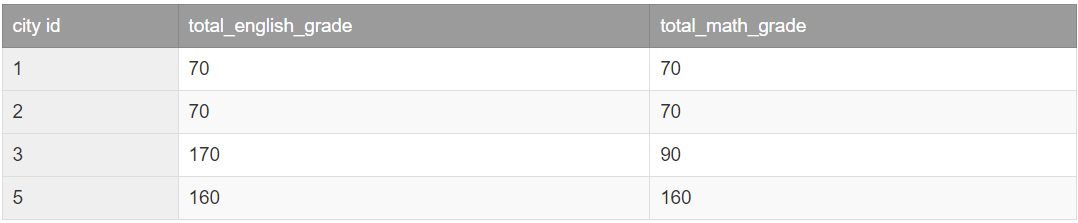 -- city_id그룹별 영어, 수학 점수 총점 출력