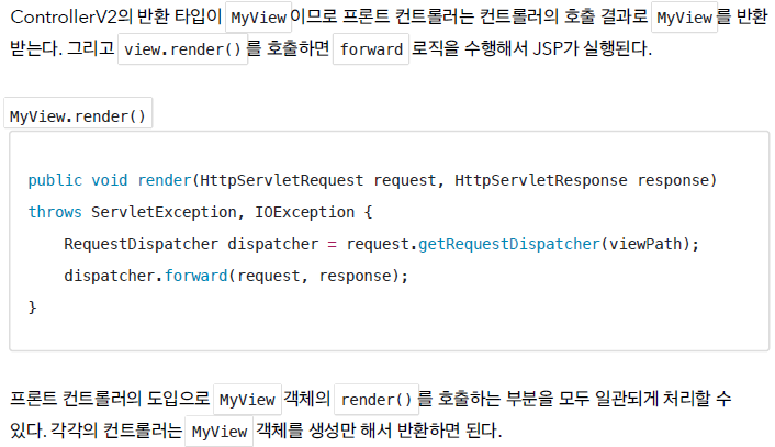 - ControllerV2에서는 뷰 페이지의 경로 등을 직접 처리하는 것이 아니라, MyView 객체를 반환