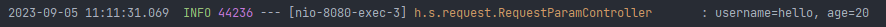 log.info("username={}, age={}", memberName, memberAge); // 파라미터를 로깅.