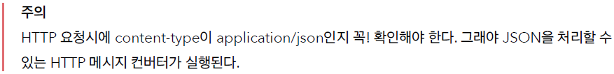 * HttpMessageConverter 사용 -> MappingJackson2HttpMessageConverter (contenttype: application/json)