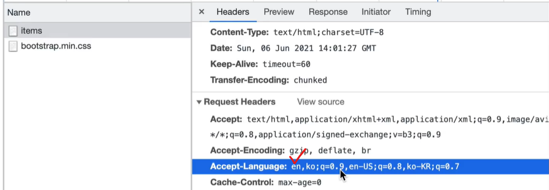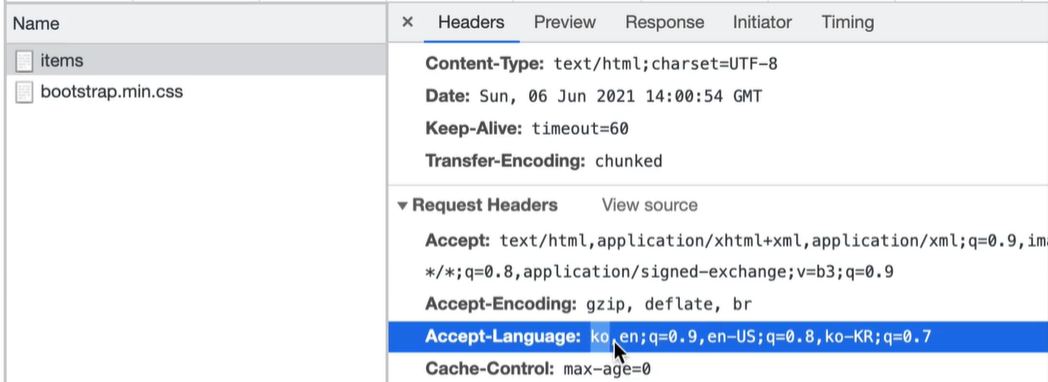 웹 브라우저의 언어 설정 값을 변경하면 요청시 Accept-Language 의 값이 변경된다.