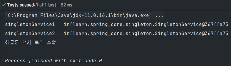 - 호출할 때 마다 같은 객체 인스턴스를 반환하는 것을 확인할 수 있다.