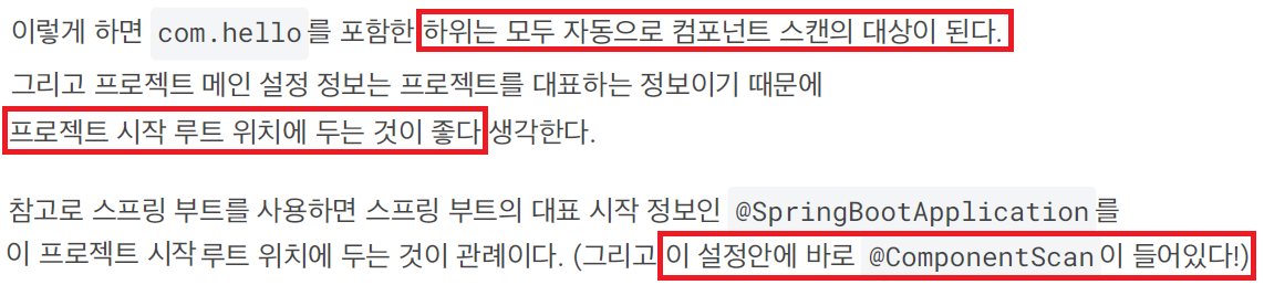 모든 자바 클래스를 다 컴포넌트 스캔하면 시간이 오래 걸린다.