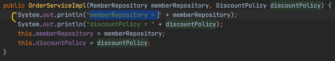 public OrderServiceImpl(MemberRepository memberRepository, DiscountPolicy discountPolicy) {