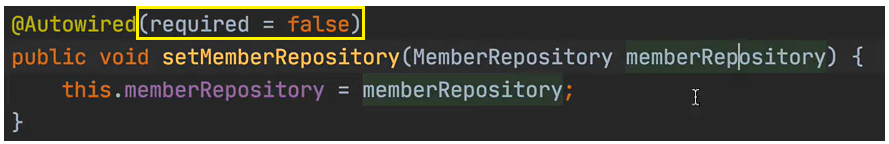 set 메서드는 의존관계 주입이 안 되었을 수도 있다. 그럴 때 선택적으로 의존관계를 줄 수도 있다.