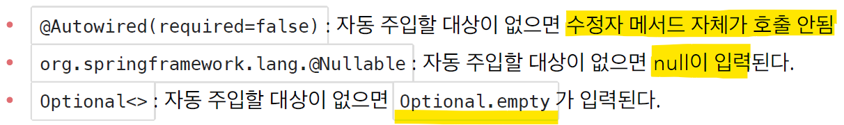주입할 스프링 빈이 없어도 동작해야 할 때가 있다.