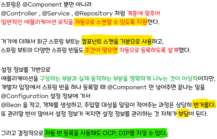 그래서 이런 기술 지원 로직들은 가급적 수동 빈 등록을 사용해서 명확하게 드러내는 것이 좋다.