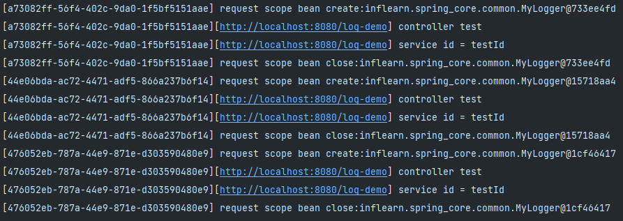 System.out.println("[" + uuid + "] request scope bean create:" + this);