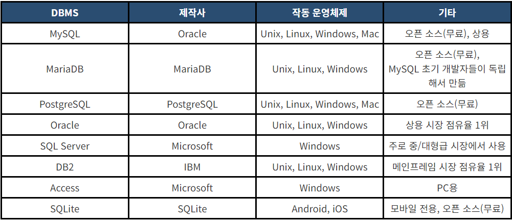 DMBS의 종류