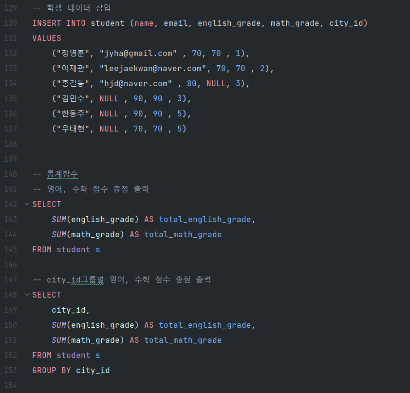 DB 핵심 정리 (4) SQL문 작성 샘플 예시
