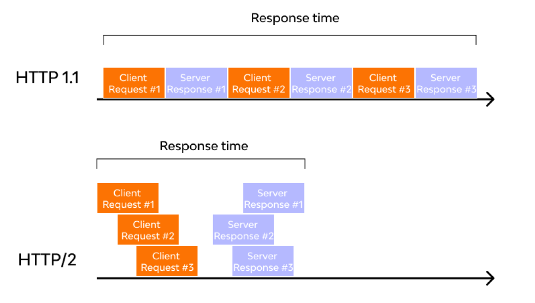• 다중화(multiplexing) 지원으로 여러 요청 및 응답을 동시에 처리 가능.