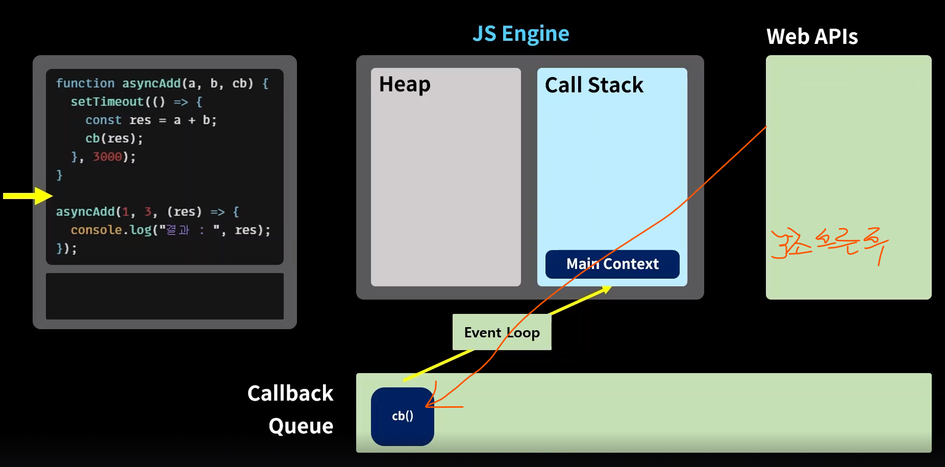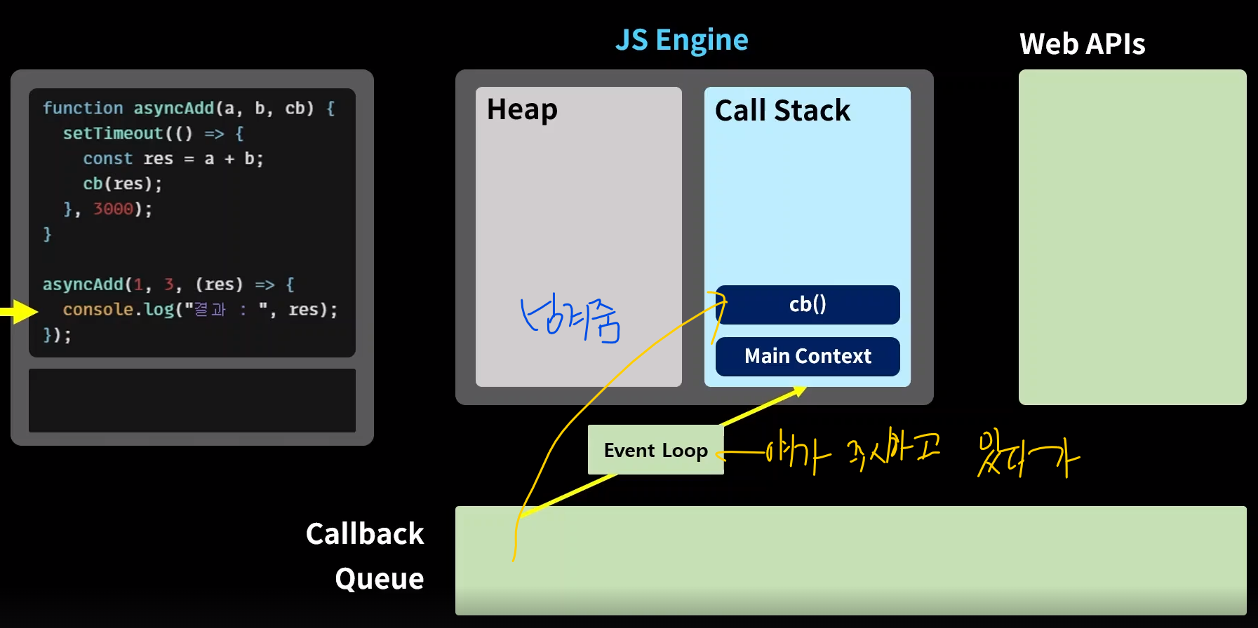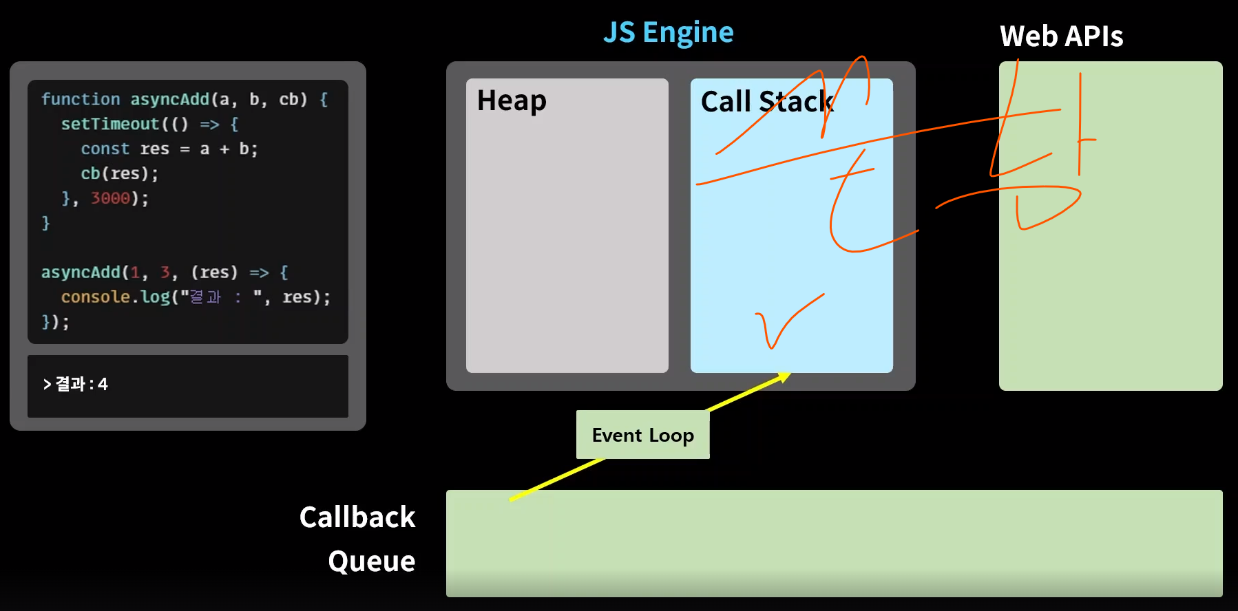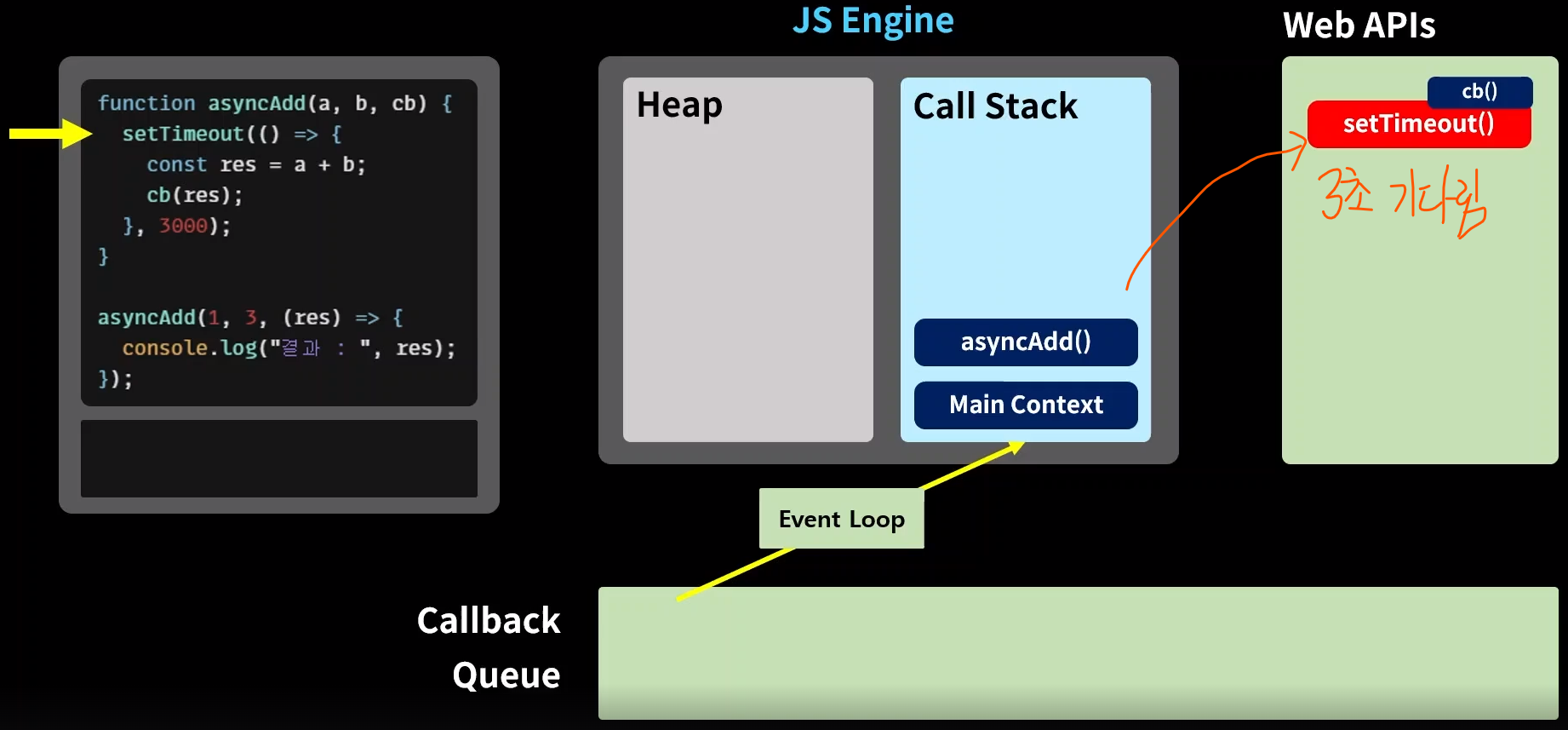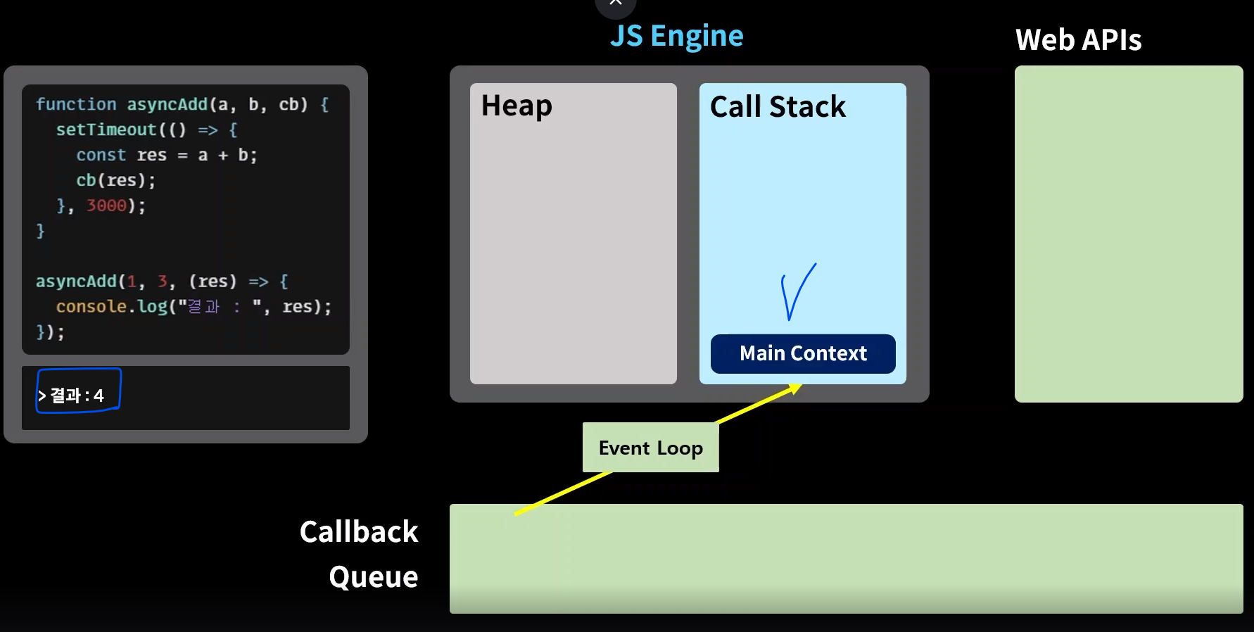 그럼 어떻게 자바스크립트 엔진은 동기적 함수와 비동기적 함수를 구분하여 사용하는가?