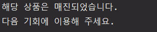 // 예외 객체를 만들 때 "해당 상품은 매진되었습니다."