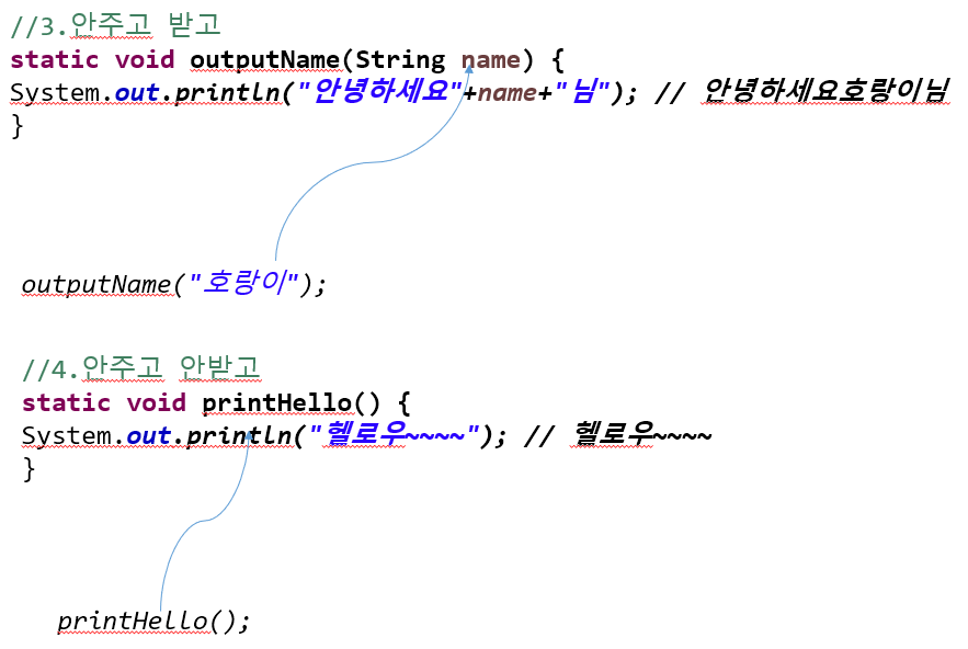 3.안주고 받고(리턴값 x, 매개변수 o)