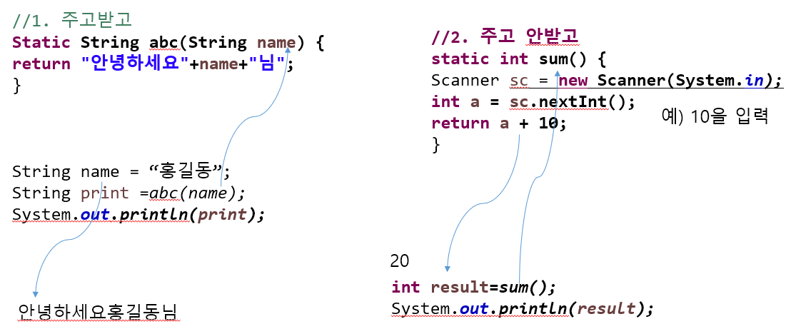1.주고 받고 (리턴값 o, 매개변수 o)