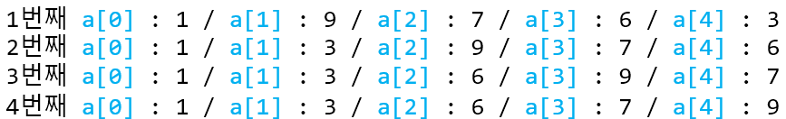 * 그 기준에 대한 비교가 끝났으면, 바깥쪽 수를 하나 증가시켜서 다 돌고(순서를 증가시키는 것)