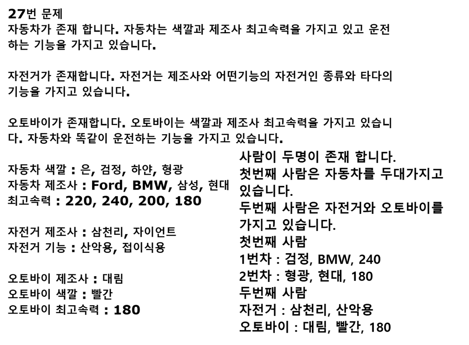 System.out.println(driver+"자동차 색깔 "+color+"이고 제조사가 "+menu+"인 차를 최고속도로 "+