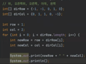 cf. 오른쪽 위 같은 것도 한방에 표현 가능 row -1 col 1