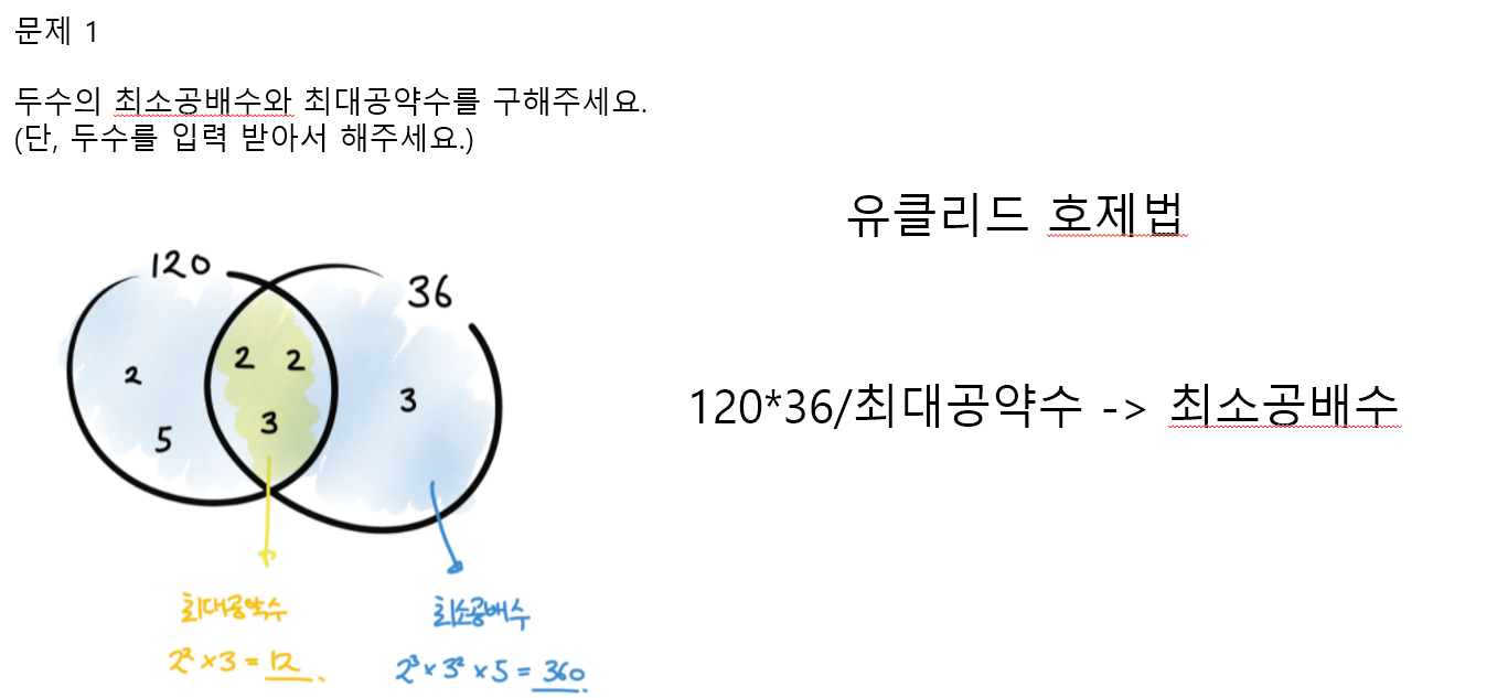 - 최소공배수는 두 숫자를 곱해서 최대공약수로 나눈 수