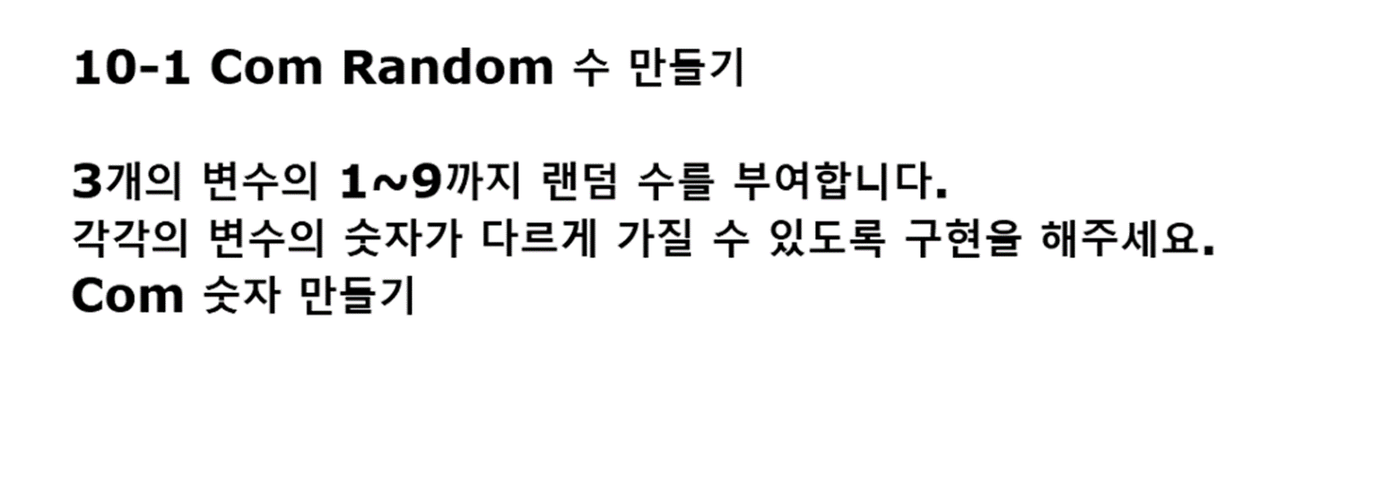 - 핵심로직은 컴퓨터가 정한 랜덤수와 사용자가 입력한 숫자를 비교해서 같은지 판단하는 것.