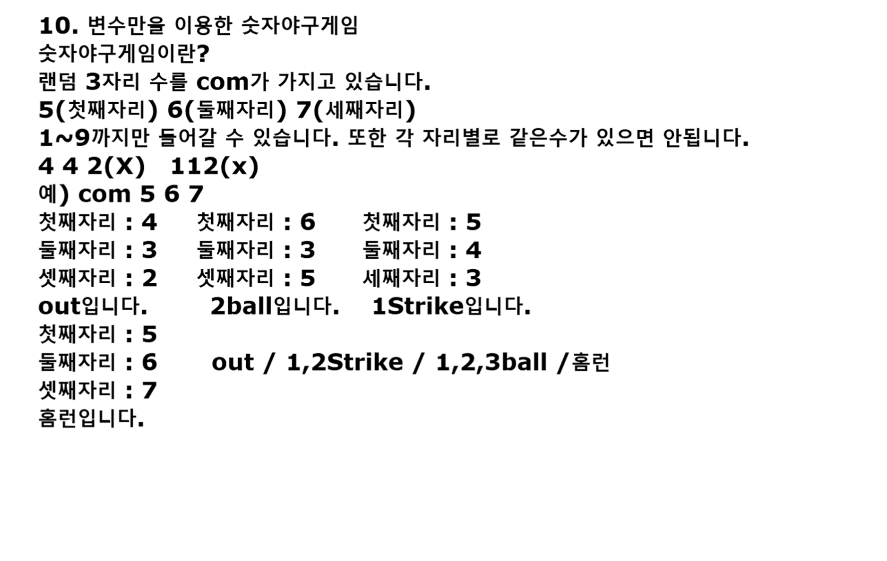 // 이제 좀 더 나아가면 strike와 ball 한꺼번에 검사가 가능
