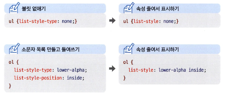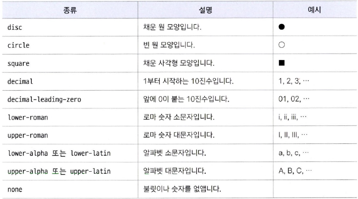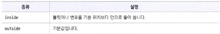 <목록 스타일의 속성값>