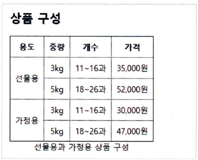 <caption>선물용과 가정용 상품 구성</caption>