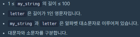 문자열 my_string 과 문자 letter 이 매개변수로 주어집니다.