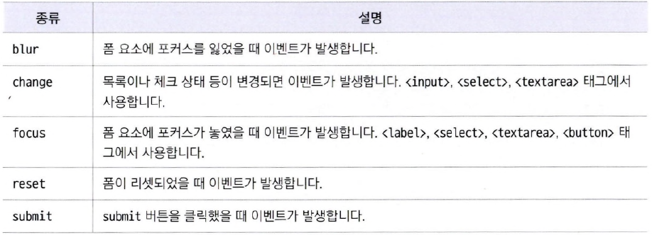 => 주로 마우스나 키보드를 사용할 때, 웹 문서를 불러올 때, 폼에 내용을 입력할 때 발생한다.