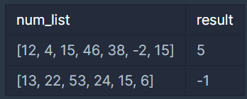정수 리스트 num_list가 주어질 때, 첫 번째로 나오는 음수의 인덱스를 return하도록 solution 함수를 완성해주세요.