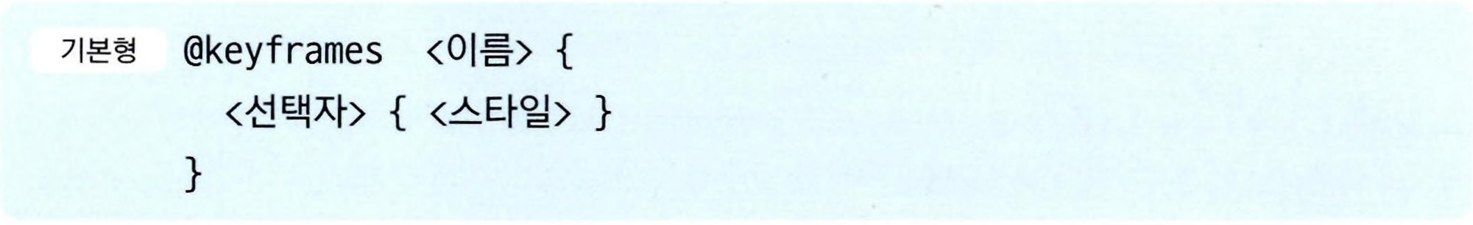 - 또한 웹 문서에서는 애니메이션을 여러 개 정의할 수 있으므로 이름을 이용해 애니메이션을 구별해야 한다.