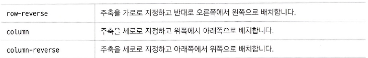 - 플렉스 컨테이너 안에서 플렉스 항목을 배치하는 주축과 방향을 지정하는 속성.