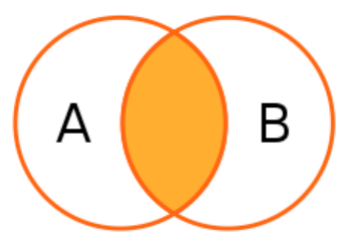 - 둘 사이의 겹치는 부분은, 테이블 A와 B의 key 값이 연결되는 부분일 것이다.