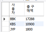SELECT userID AS '사용자 아이디', sum(price*amount) AS '총 구매액' from buytbl GROUP BY userID;