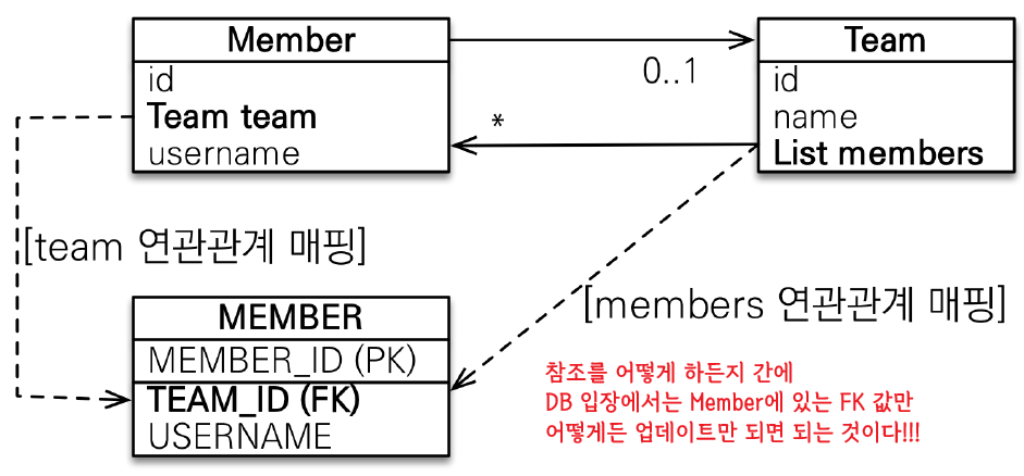 => 둘 중 하나로 외래 키를 관리해야 한다.